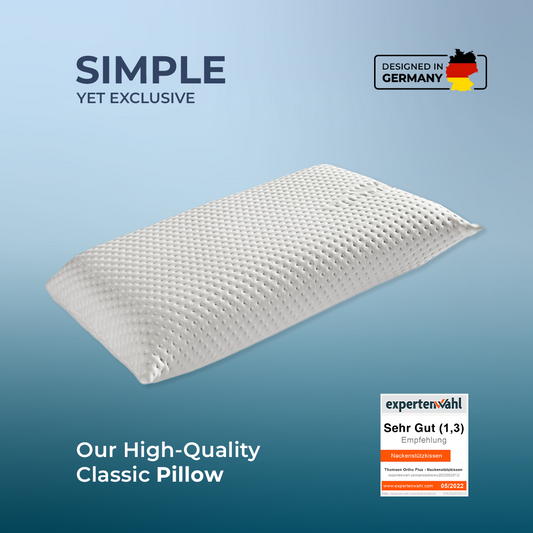 Made in Germany, the pillows offer premium comfort and an optimum sleeping atmosphere. Our products are breathable and have temperature-regulating properties, while also being hypoallergenic.