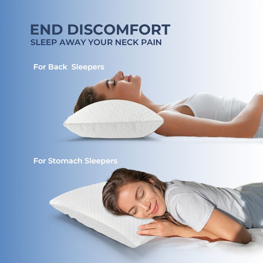 - Ergonomic Support: Our pillows are ergonomically designed to promote proper spinal alignment, reducing neck pain and muscle stiffness for better sleep.