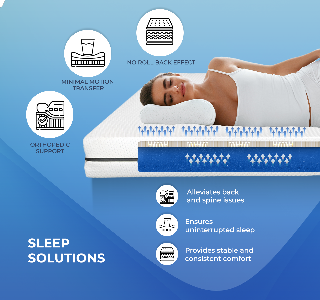 that your body gets ideal pressure relief and comfort at every point with its Targeted Point Elasticity (TPE) system. It also ensures that your partner is not disturbed due to the complete lack of motion transfer. Moreover, the